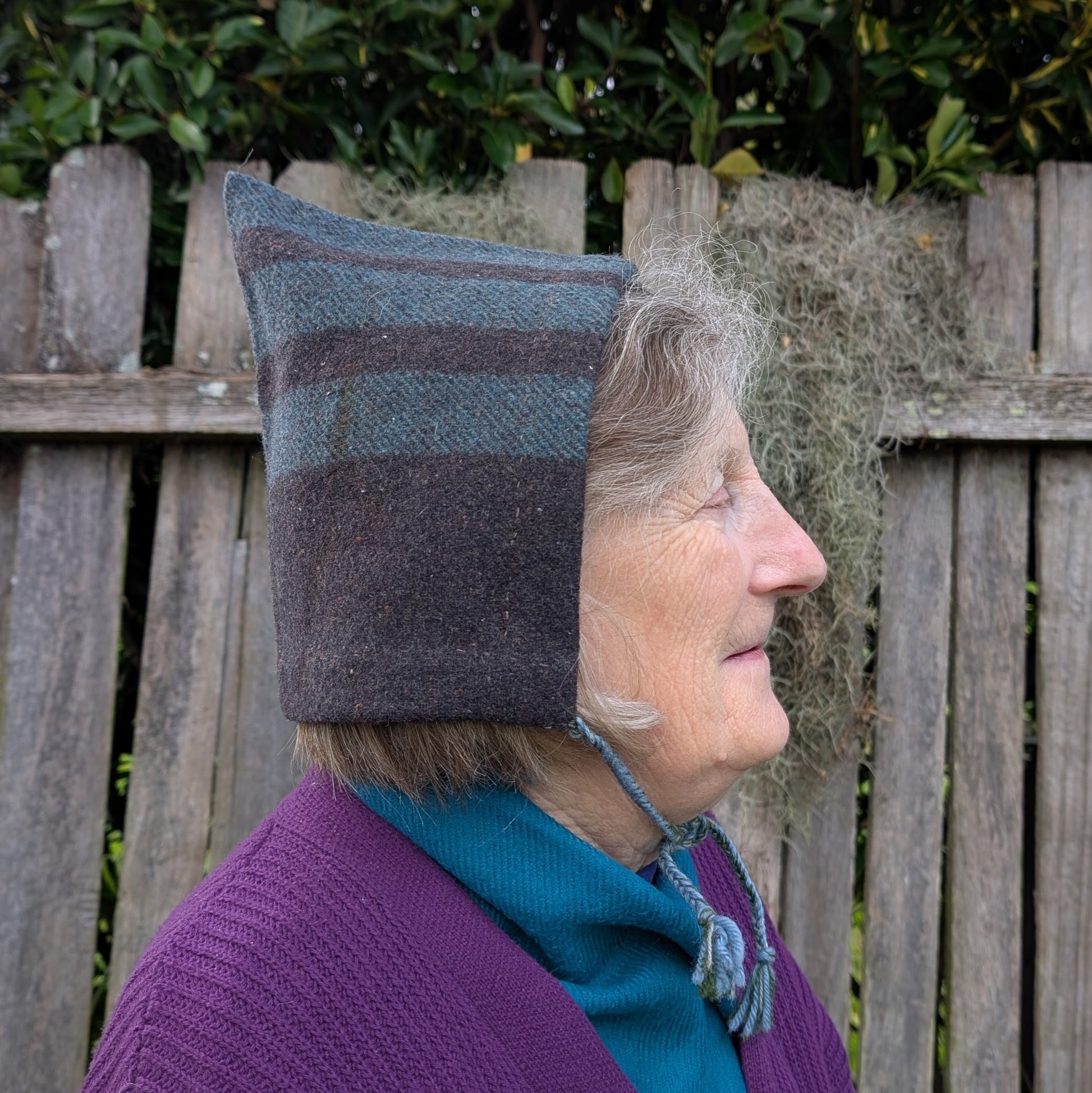 Hand-Sewn Grey-Green Heavy Wool Hood with Ties