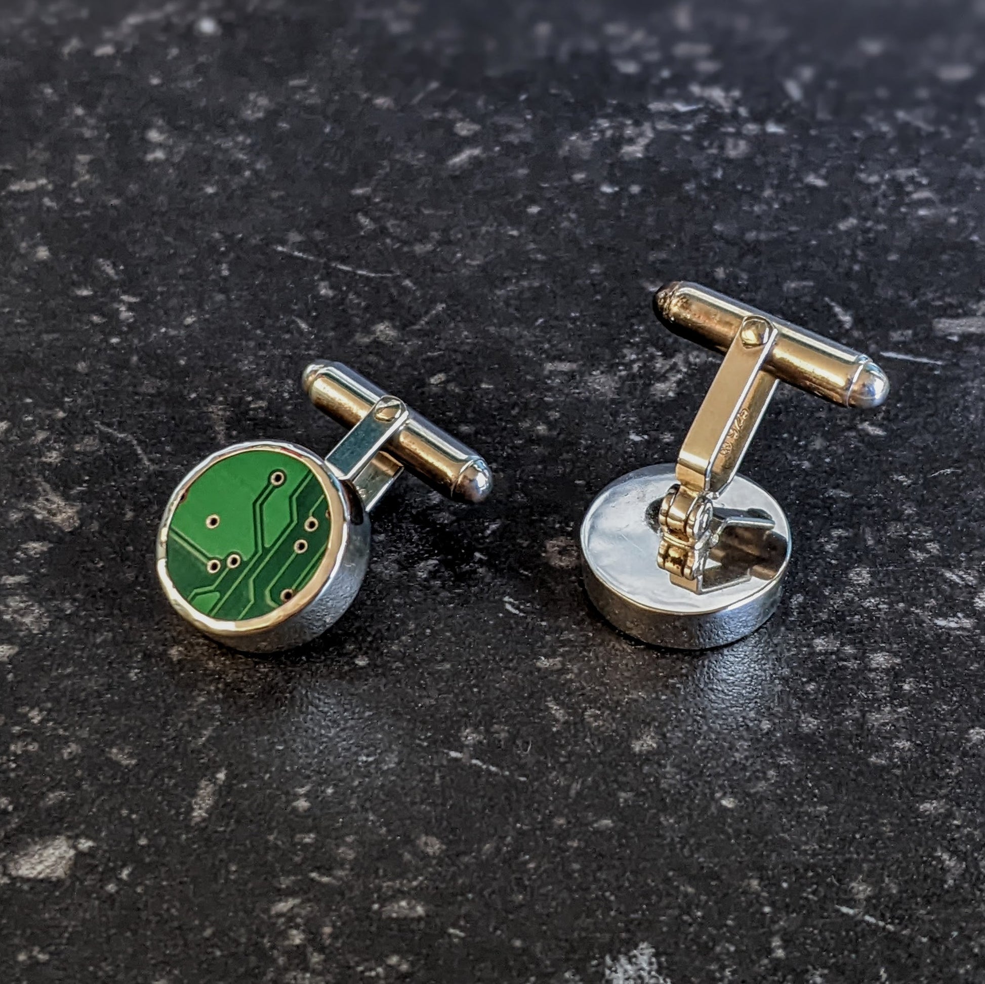 These cufflinks are a unique accessory for any occasion, and make a perfect gift for geek weddings, people working in tech, cyberpunk fashionistas, or green design lovers.
